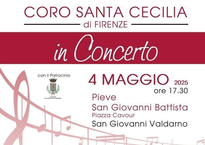 A conclusione del ciclo di iniziative dell’associazione Archeosofica, domenica 4 maggio alle 17,30, nella Pieve di San Giovanni Battista in piazza Cavour, si terrà il concerto del Coro Santa Cecilia di Firenze, con il patrocinio del Comune di San Giovanni Valdarno.
