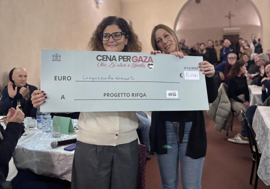 Il ricavato della cena è stato destinato a sostenere Rifqa, un progetto umanitario che porta aiuti diretti alla popolazione di Gaza, garantendo l’accesso a beni di prima necessità, assistenza sanitaria e supporto educativo.