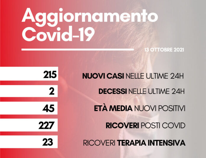 L’età media dei 215 nuovi positivi odierni è di 45 anni circa (20% ha meno di 20 anni, 18% tra 20 e 39 anni, 31% tra 40 e 59 anni, 23% tra 60 e 79 anni, 8% ha 80 anni o più).