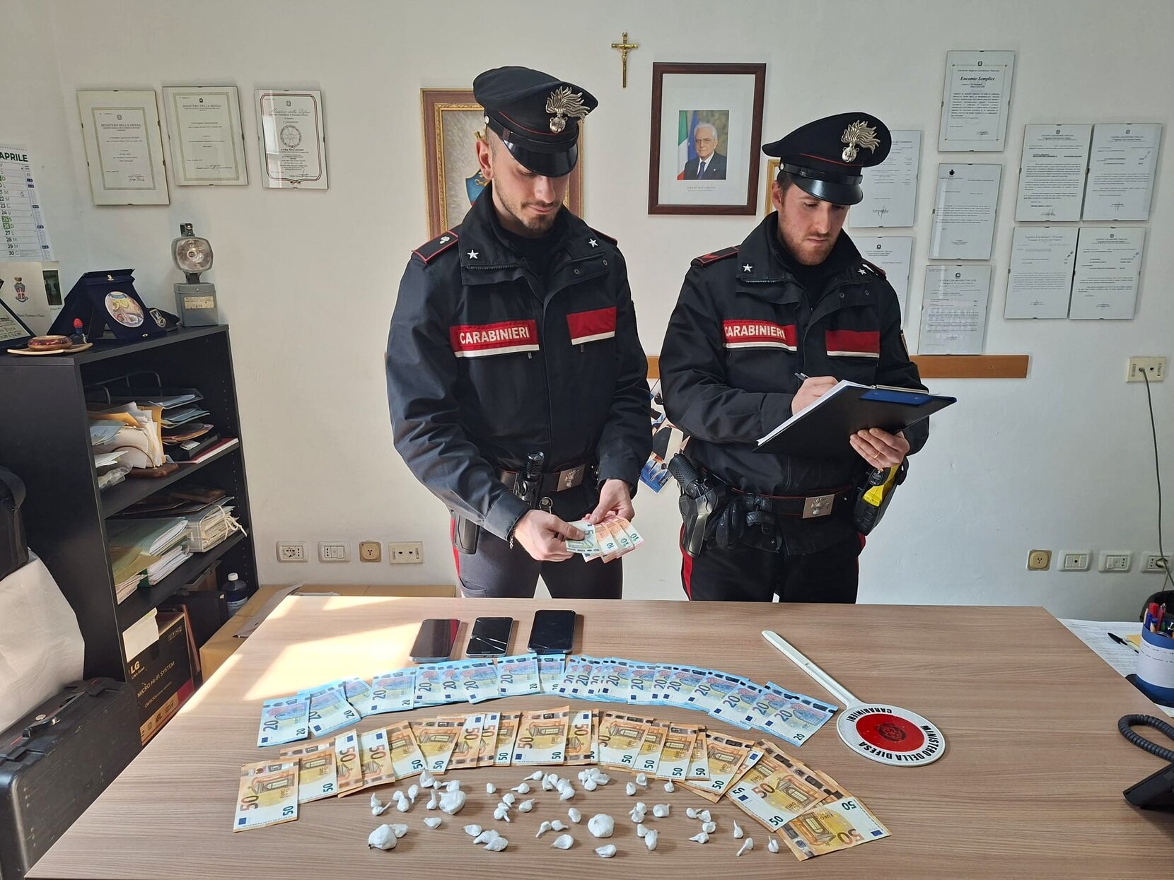 I militari non si sono lasciati impressionare dalle richieste del giovane, e durante il controllo del mezzo, uno dei carabinieri si è insospettito del fatto che, avendo poggiato involontariamente la mano sul claxon dell’auto, questo non ha suonato, quindi ha provveduto a verificare il dispositivo acustico, accertando che lo stesso era stato modificato ad arte, ricavandone un incavo all’interno del quale, il giovane ha pensato di nascondere lo stupefacente, ma i militari hanno trovato ben 49 dosi di cocaina, già pronti e destinati allo spaccio nelle discoteche e locali notturni del Valdarno, nonché ben 1800 euro in contanti, ritenuti provento di tale attività illecita, tutto sottoposto a sequestro.