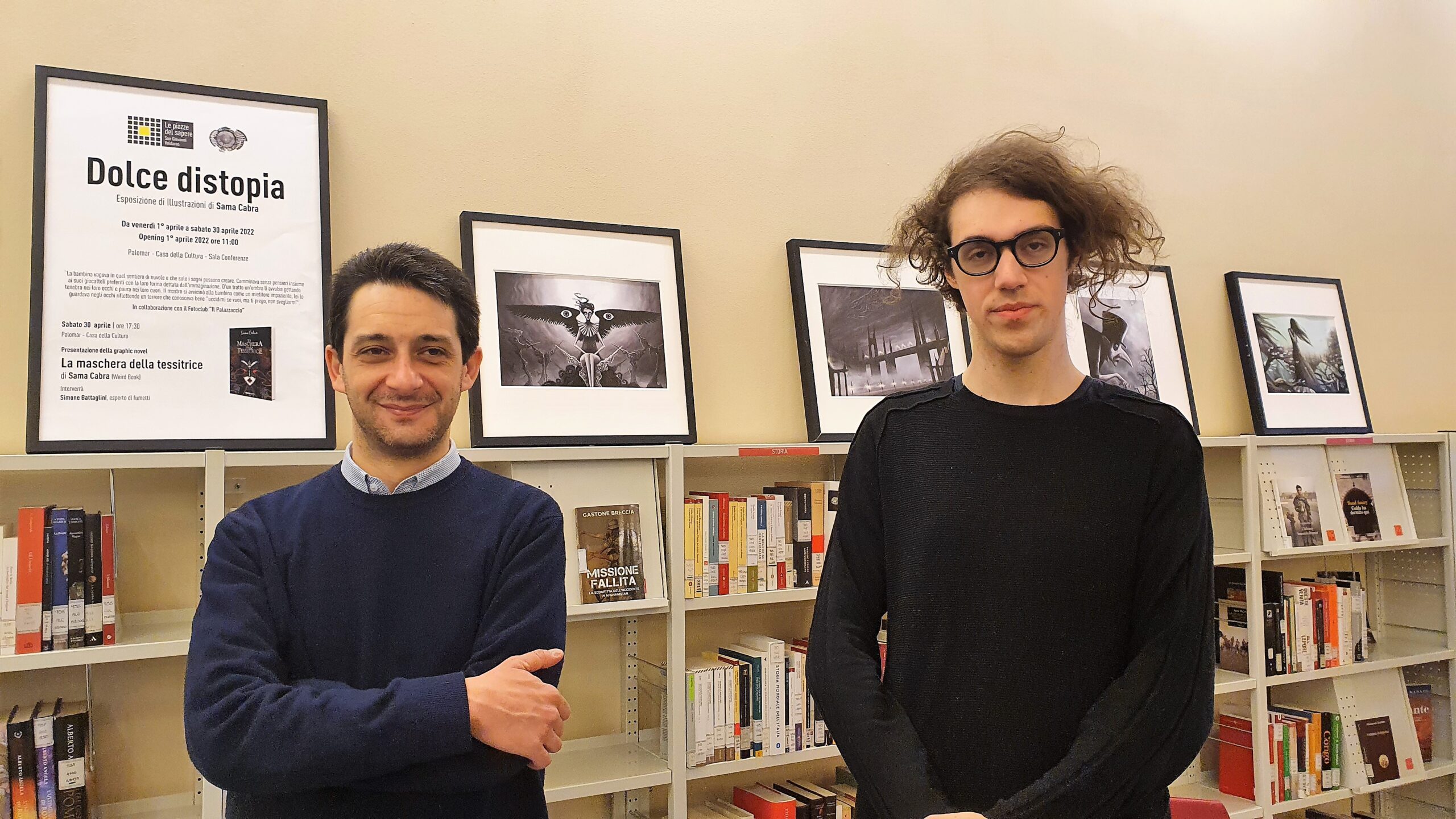 Ed è per questo che siamo molto lieti di ospitare a Palomar per l’intero mese di aprile una esposizione delle sue illustrazioni; è per questo che siamo ben contenti che si sia reso disponibile a presentare qui, dove è esposta una selezione delle sue illustrazioni, la sua graphic novel ‘La maschera della tessitrice’ il 30 aprile; ed è per questo che gli auguriamo che il suo talento possa essere conosciuto sempre di più ed abbia una carriera artistica ricca di appagamento e di tutte le soddisfazioni che merita. Come Amministrazione comunale, non possiamo che essere orgogliosi che la nostra città vanti giovani così talentuosi”.